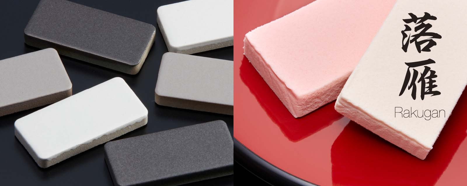 The slightly rounded, petite form represents the motif based on rakugan, a traditional Japanese confection